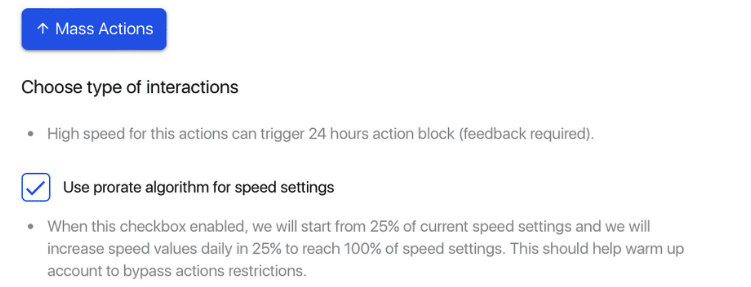 Select Prorate Algorithm function to set the speed to 25% of the speed you set. It will gradually speed up 25% each day until it reaches 100% of the speed you set